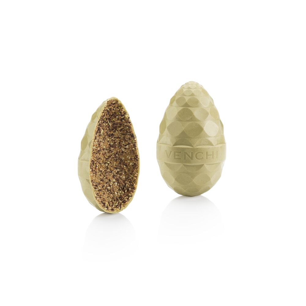 White chocolate and pistachio paste with a crunchy innerย trendy coating of pistachio grains, toffee and cocoa nib.
