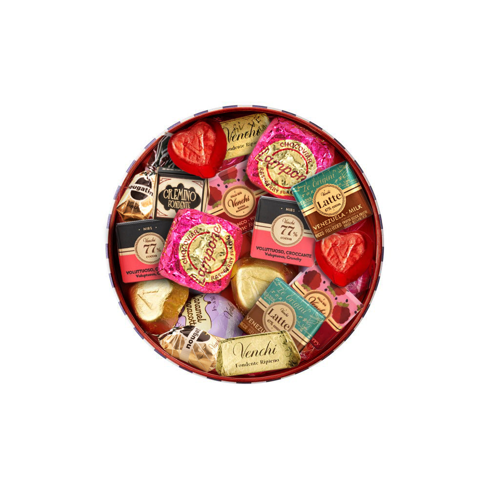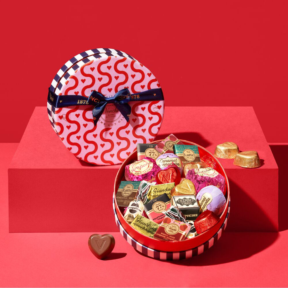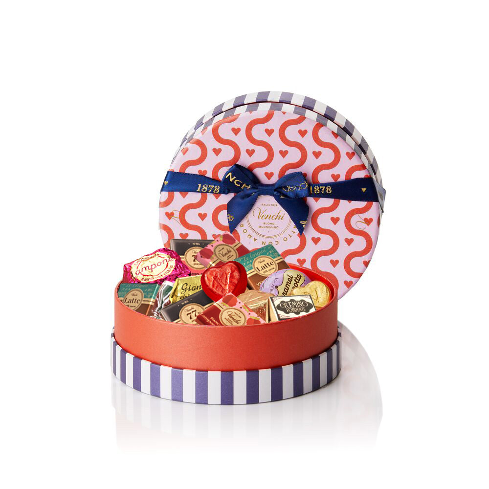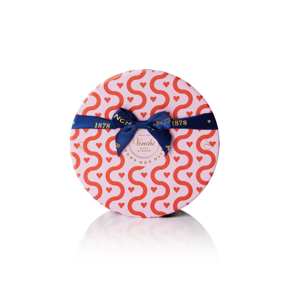 A charming round gift box filled with 19 assorted chocolates, crafted to celebrate every sweet moment of love. Featuring a joyful Valentineโs design and a delightful mix of Venchi favorites, this box is perfect for gifting, sharing, or treating someone special.