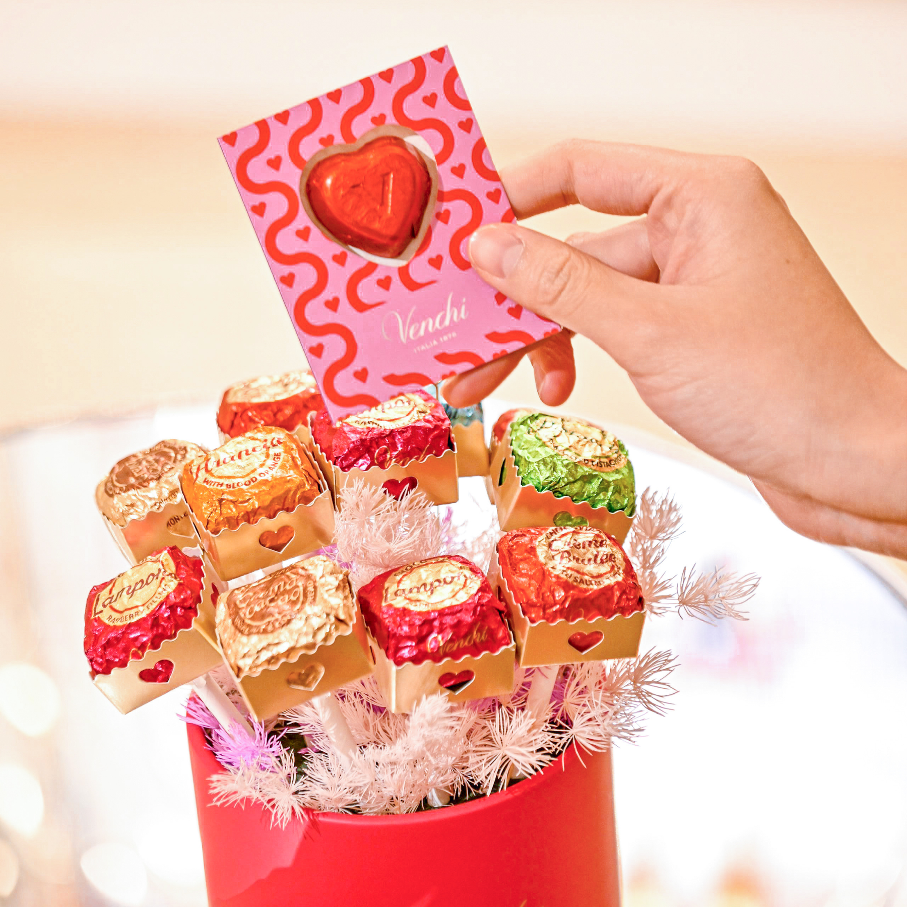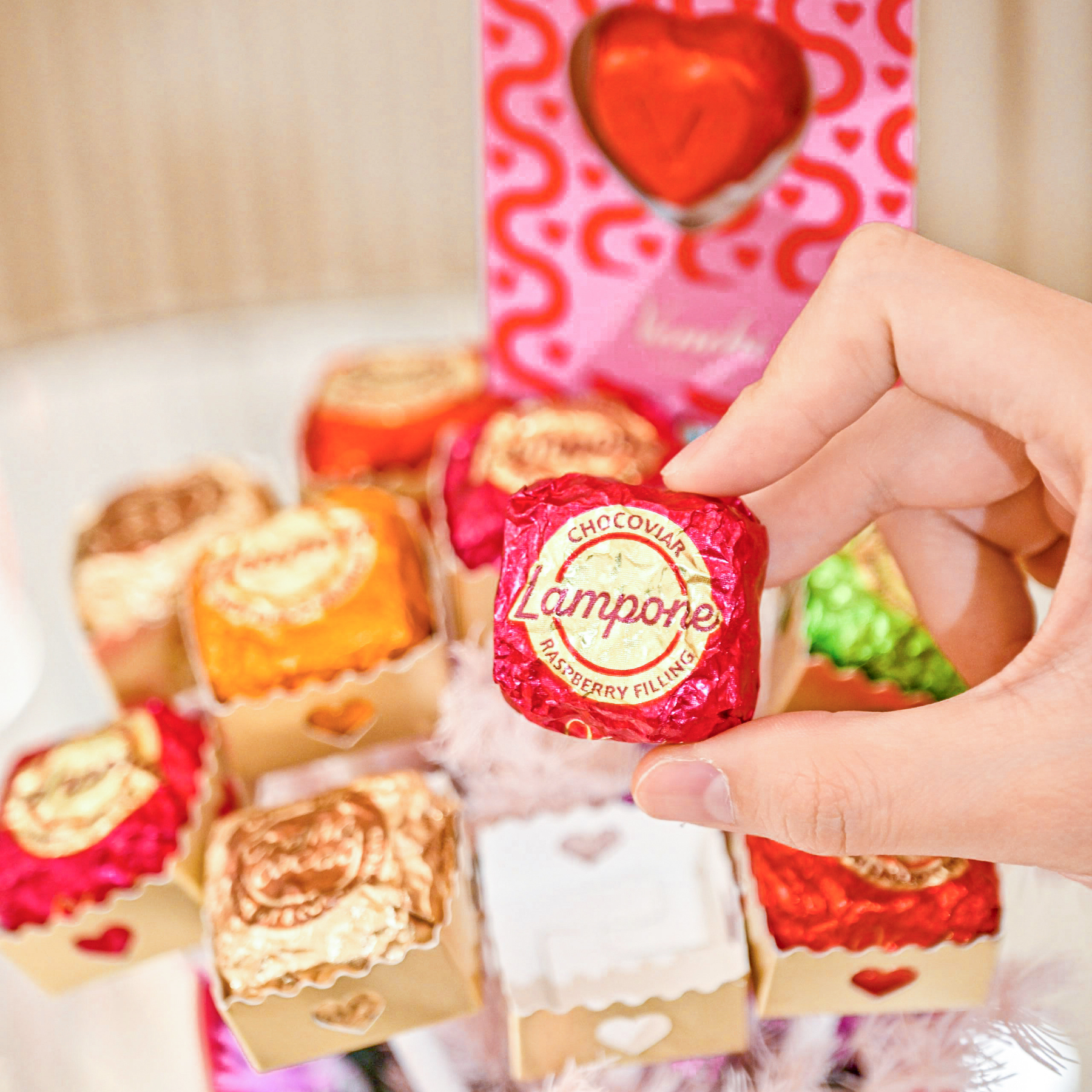 以細膩匠心打造,匯集 11 粒標誌性的Chocoviar 巧克力,以豐富巧克力碎粒包裹絲滑內餡,呈現 6 種經典風味層次;臻選單顆心形朱古力作為精緻點綴,象徵愛意的甜蜜綻放。