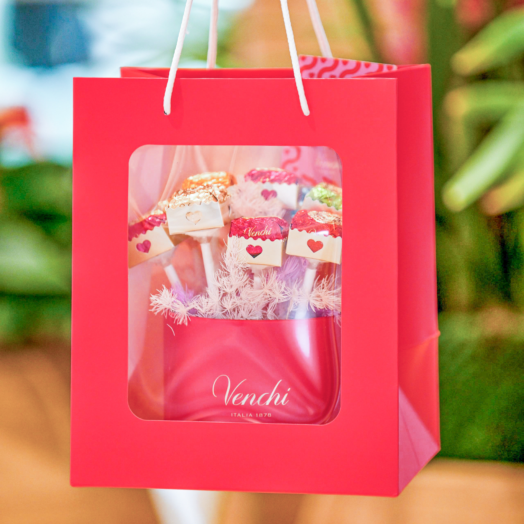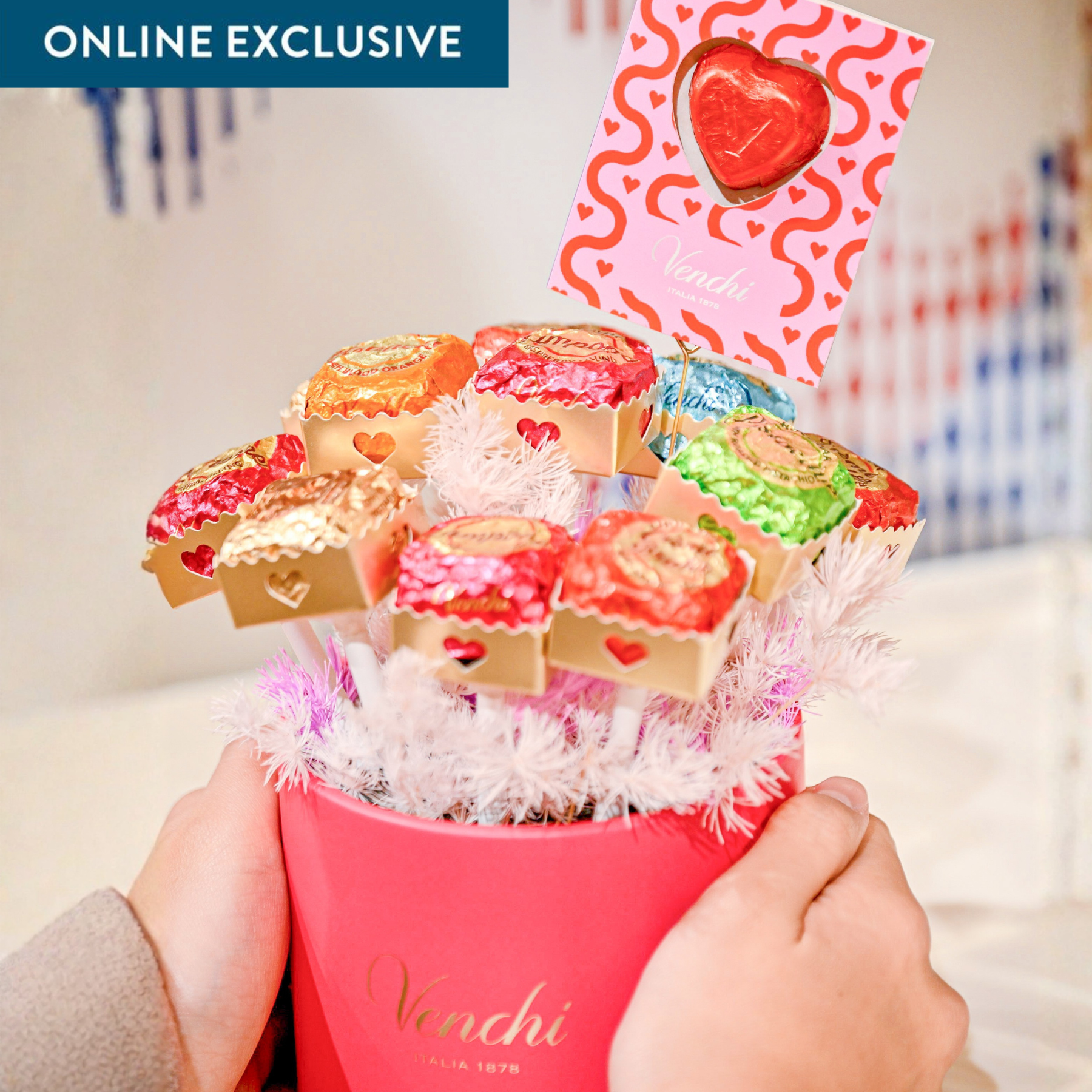 搭配鮮艷粉色禮盒與夢幻乾花裝飾,化作優雅而唯美的巧克力花束,是饋贈摯愛的奢華之選,讓每一刻因甜蜜而更顯珍貴。